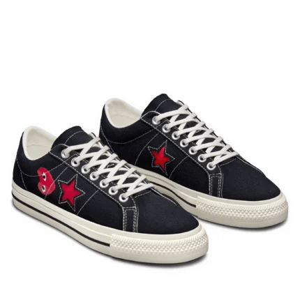 Step into timeless streetwear style with the Cdg Converse One Star Low Top Black – a bold fusion of Japanese minimalism and American sneaker heritage. This low-top sneaker reimagines the iconic One Star silhouette through the creative lens of Comme des Garçons PLAY, featuring the signature heart logo with eyes peeking through the all-black canvas upper.
