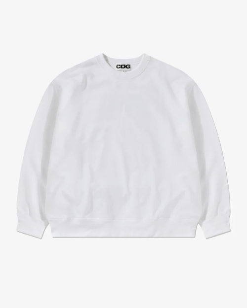Made from premium quality cotton, the CDG Oversized Sweatshirt White delivers breathability and durability, ensuring long-lasting wear. The crisp white color enhances its fresh, timeless appeal, making it easy to pair with jeans, joggers, or even tailored pants for a more fashion-forward approach. Its ribbed crew neck, cuffs, and hemline offer a snug yet comfortable fit, balancing structure with the relaxed oversized shape.